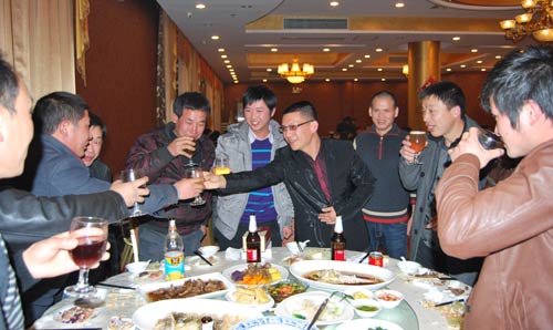 上圖為晚會(huì)上楊總向員工敬酒為大家祝福,并組織員工參加“找朋友”游戲,外貿(mào)部袁艷女士為大家?guī)?lái)一首《常回家看看》。